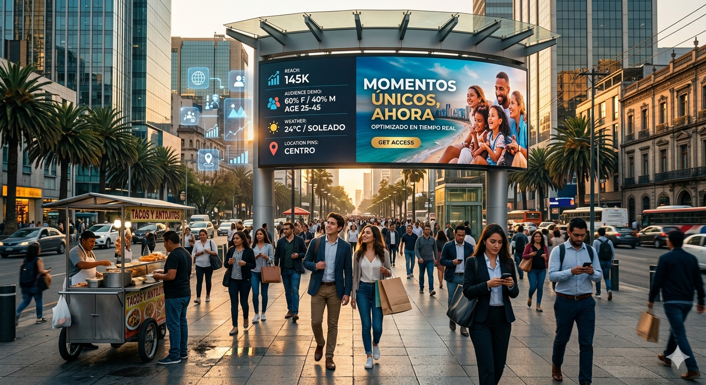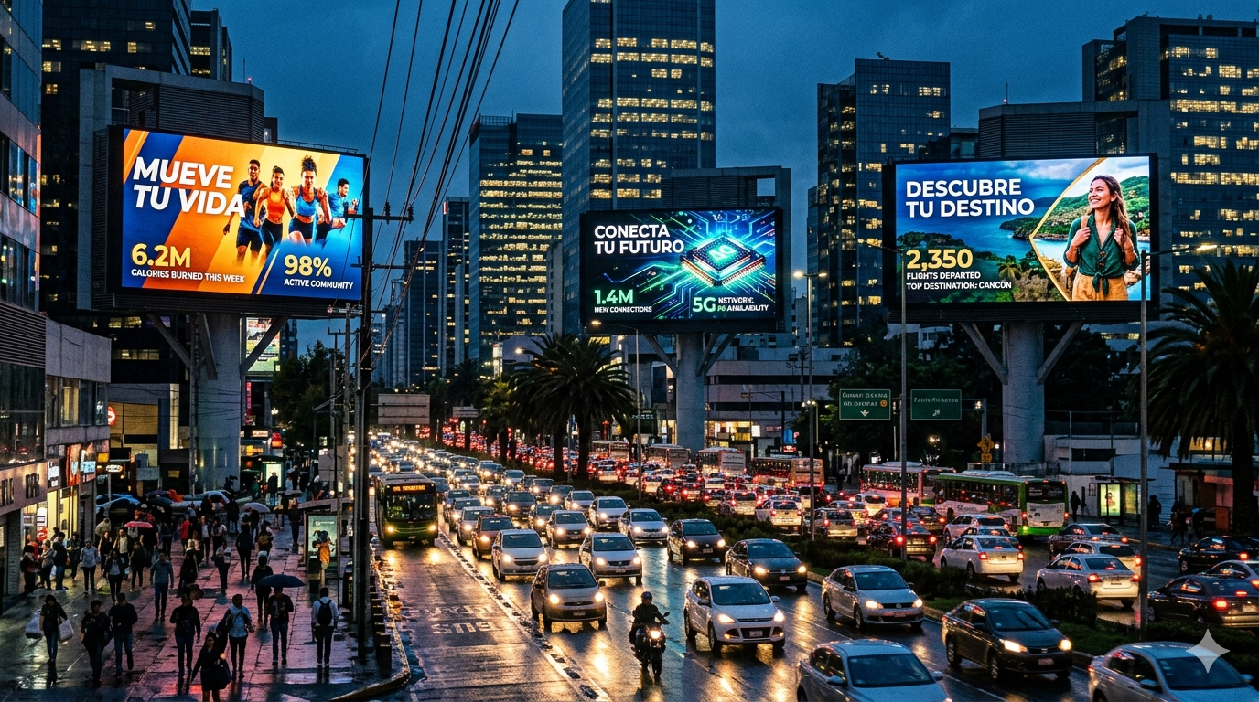 México reúne condiciones ideales para el despegue del pDOOH: alta densidad urbana, crecimiento acelerado de infraestructura digital en vía pública y una cultura de marca que valora el impacto visual. Ciudades como Ciudad de México, Guadalajara, Monterrey y Tijuana ya cuentan con redes de pantallas conectadas que permiten compra programática.